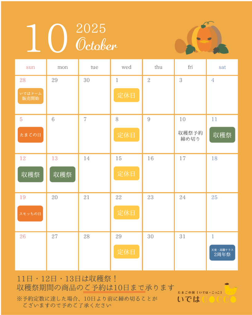 いではこっこの10月営業予定が決まりましたのでお知らせいたします📢