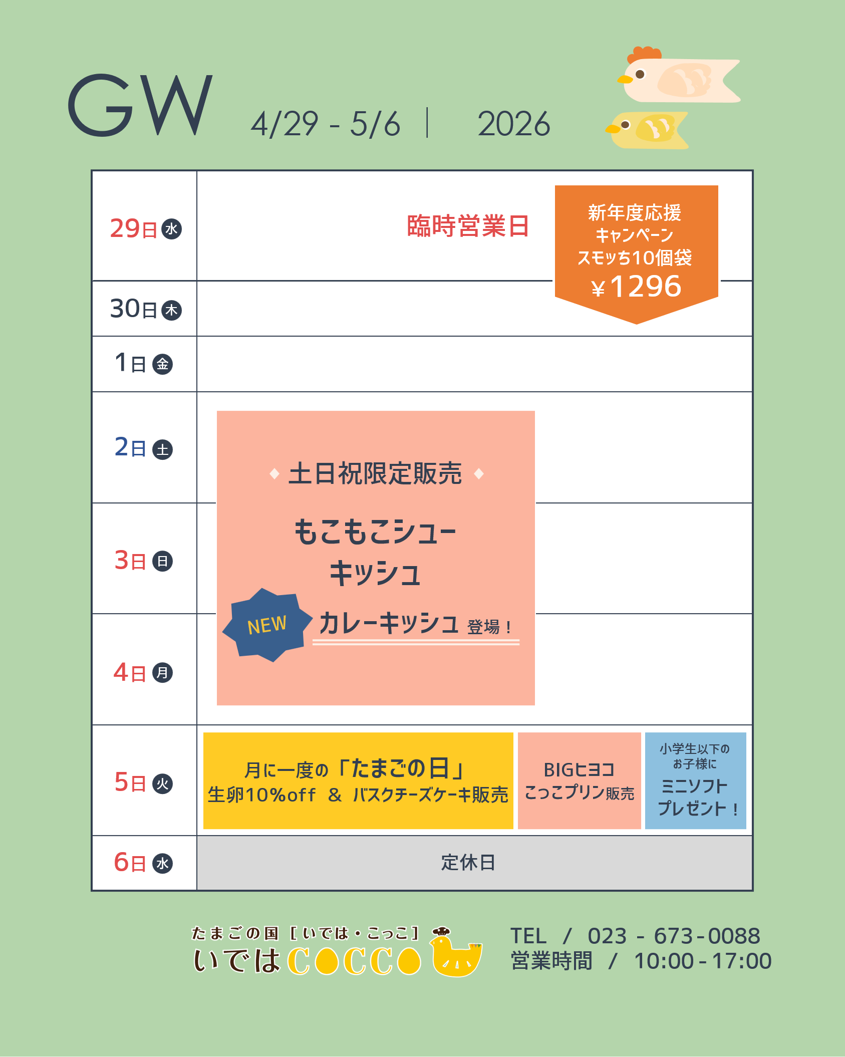 ◾︎ 5/5(火) たまごの日&こどもの日ミニイベント